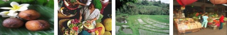 65 % der Insel werden landwirtschaftlich genutzt, davon ist Reis das bedeutendste Anbauprodukt welches hauptsächlich für den Eigenbedarf produziert wird. Aber auch Kokosnüsse, Obst, Kautschuk, Zuckerrohr, Tee, Kaffee und eine Vielzahl von Gewürzen werden auf Bali geerntet. Als zusätzliche Einnahmequelle fungiert der Verkauf von Rindern und Schweinen.