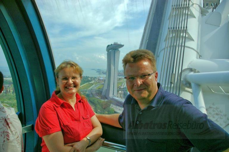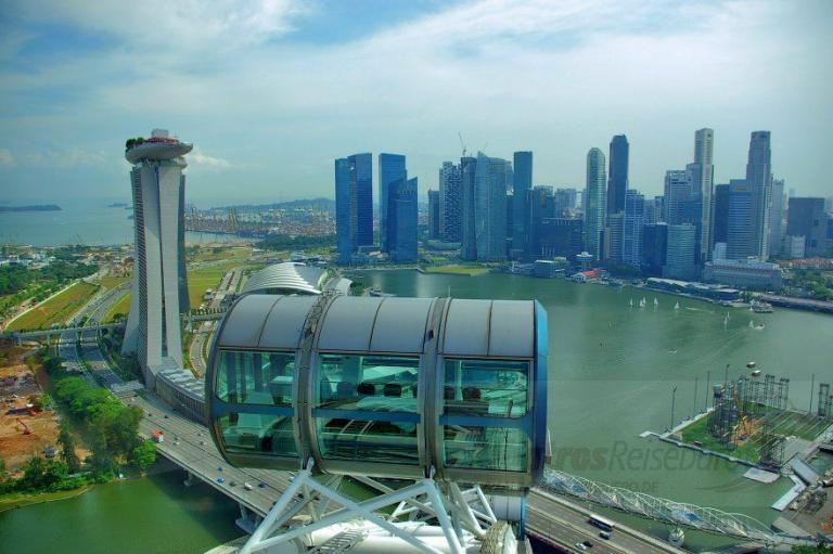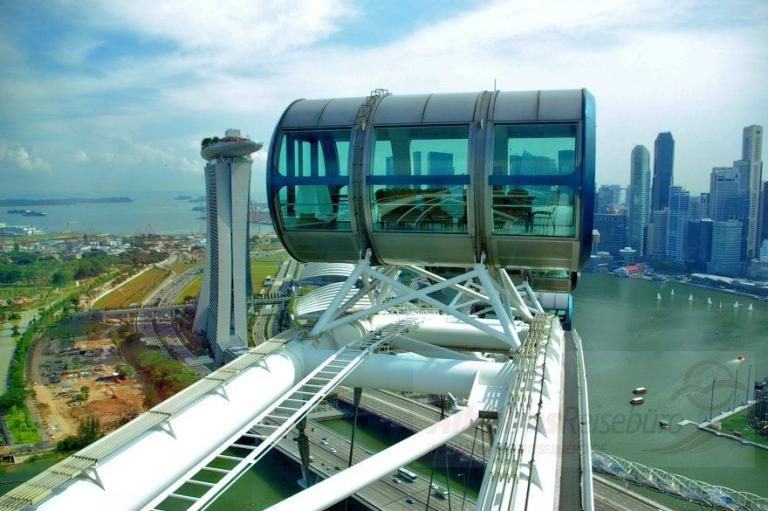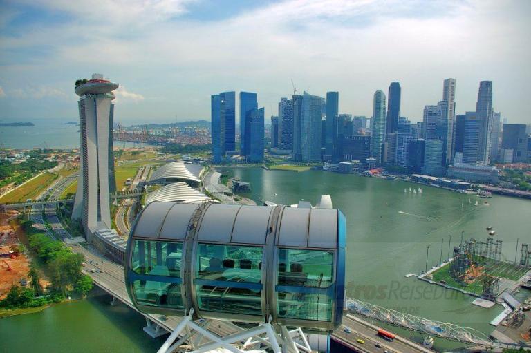 Wenn Ihnen der Sinn nach einem spektakulären Ausblick auf die Marina Bay, Singapur und Teile Indonesiens und Malaysias steht, sollten Sie sich eine Fahrt mit dem 42 Etagen hohen Singapore Flyer, dem grössten Riesenrad