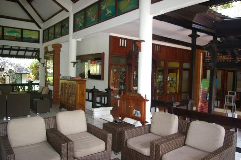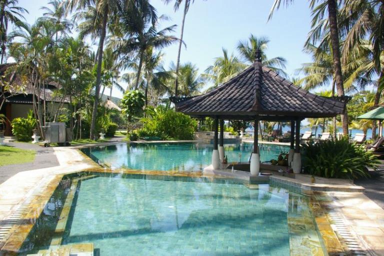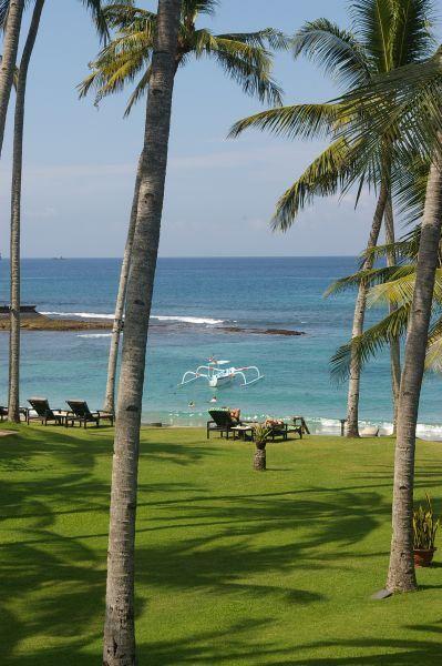 Das Schwesterhotel des Legian Beach Hotels liegt direkt an der ruhigen, ursprünglichen Nordostküste (der kleine Strand wird während der Flut überspült). Zum Örtchen Candidasa sind es ca. 2 km, dort gibt es landestypische Restaurants und Einkaufsmöglichkeiten.
