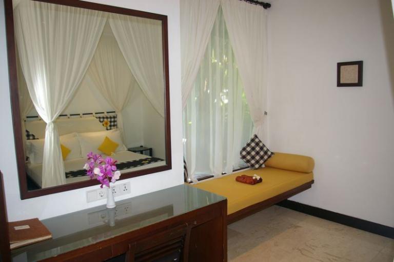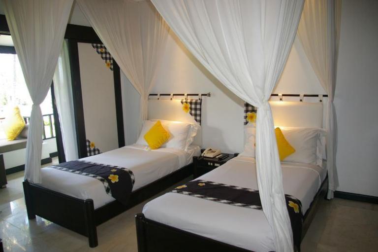 Die 64 klimatisierten Zimmer sind im balinesischen Stil eingerichtet. Der Typ Superior im Haupthaus bietet Bad mit Dusche/Badewanne, Haartrockner, Safe, Flat-TV, DVD-Player, Telefon, Heißwasserkocher, Minibar und kleine Terrasse oder Balkon mit Gartenblick.