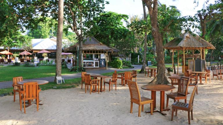 In Strandnähe befinden sich der Pool mit Liegestühlen und Sonnenschirmen sowie eine Bar und ein Open Air Restaurant.
