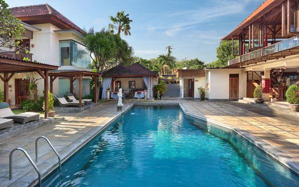 Direkt am langen Sandstrand von Sanur gelegen. In der Nähe befinden sich zahlreiche Einkaufsmöglichkeiten und Restaurants. Fahrtzeit zum Flughafen: ca. 25 Minuten.