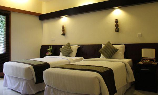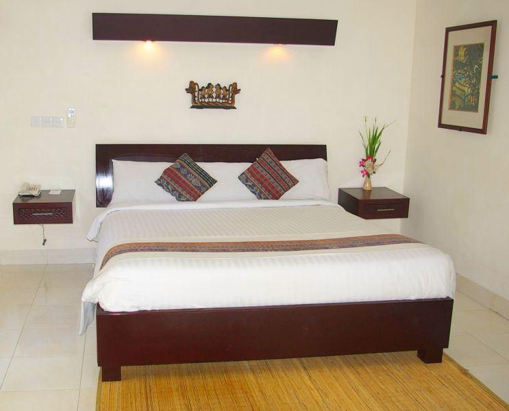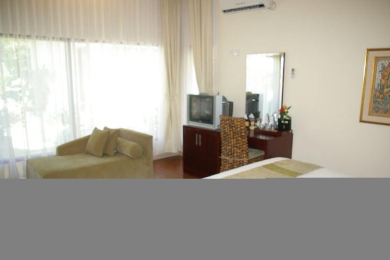 Die Zimmer verteilen sich auf die Deluxe-Bungalows (je 2 Wohneinheiten pro Bungalow) und auf die Zimmer im Haupthaus. Die Deluxe-Bungalows sind ebenerdig gelegen und mit Dusche/WC, Telefon, Sat.-TV, Minibar, Klimaanlage, Safe und einer kleinen Terrasse ausgestattet.