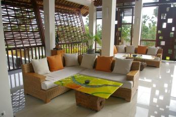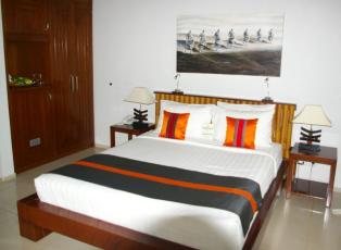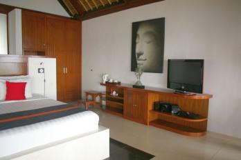 Die modernen, in klaren Linien eingerichteten Zimmer sind mit balinesischen Stilelementen dekoriert. Zur komfortablen Ausstattung auf mindestens 45 m² gehören: halboffenes Badezimmer mit Dusche/WC, Klimaanlage, Ventilator, Safe, Telefon und Veranda.