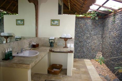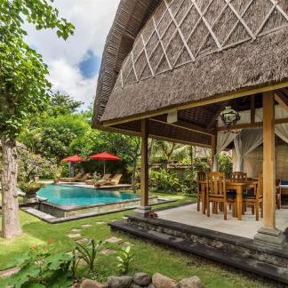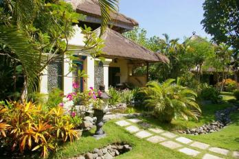 Zur Grundausstattung der im traditionellen balinesischen Stil gehaltenen Zimmer gehören Bad/WC, Außendusche, Klimaanlage, Safe und Veranda. Die Standardzimmer (3 Sterne) in Reihenbungalows liegen im mittleren Bereich der Anlage, der Typ Gardenview Cottage (zumeist einzelnstehend) liegt etwas näher zum Pool/Strand, ist geräumiger und bietet zusätzlich eine Minibar.