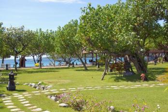 Direkt am feinsandigen, dunklen Lavastrand im Nordwesten Balis bei Pemutran. Die idyllische Umgebung zeichnet sich durch das großartige Panorama der Bergketten des West Bali Nationalparks aus, schon direkt vor dem Hotel finden Sie fischreiche Riffe (auch die künstlichen Riffe des "Reef Garden Projects"). Menjangan, ein ideales Tauchgebiet, ist schnell erreichbar. In der Nachbarschaft (entlang des Strandes) gibt es weitere Resorts mit günstigen Restaurants, entlang der Straße können Sie Früchte, Kekse und Getränke in den landestypischen Tante-Emma-Läden ("Warung") erstehen. Angenehm: die Bewohner der Gegend sind freundlich und interessiert, dabei aber zurückhaltend (z.B. keine oder kaum Strandverkäufer). Der Transfer vom Internationalen Flughafen im Süden der Insel dauert gut 4 Stunden und führt zum Teil durch spektakuläre Landschaften. Fahrten während der Dunkelheit sind möglich, dauern aber länger. Bei Abflügen vor 13.00 Uhr fällt ein Zuschlag in Höhe von Euro 24 pro Wagen an. Hinweis: keine Reiseleitung vor Ort (aber telefonische Erreichbarkeit).