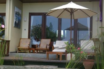 Die Deluxe-Zimmer sind sehr geräumig und geschmackvoll mit Holz und Rattanmöbeln eingerichtet. Sie verfügen über Dusche, WC, Minibar, Deckenventilator, Klimaanlage, Safe und eine gemütliche Sitzecke sowie über ein Sonnendeck (Obergeschoss) oder eine Terrasse mit eigenen Sonnenbetten (Untergeschoss). Die Zimmer bieten zudem alle einen wunderschönen Garten-, Pool- und Meerblick.