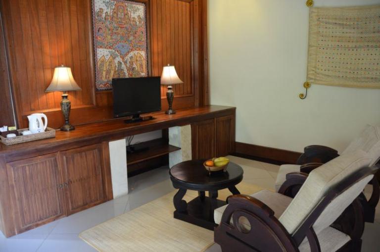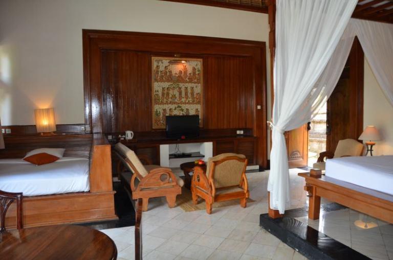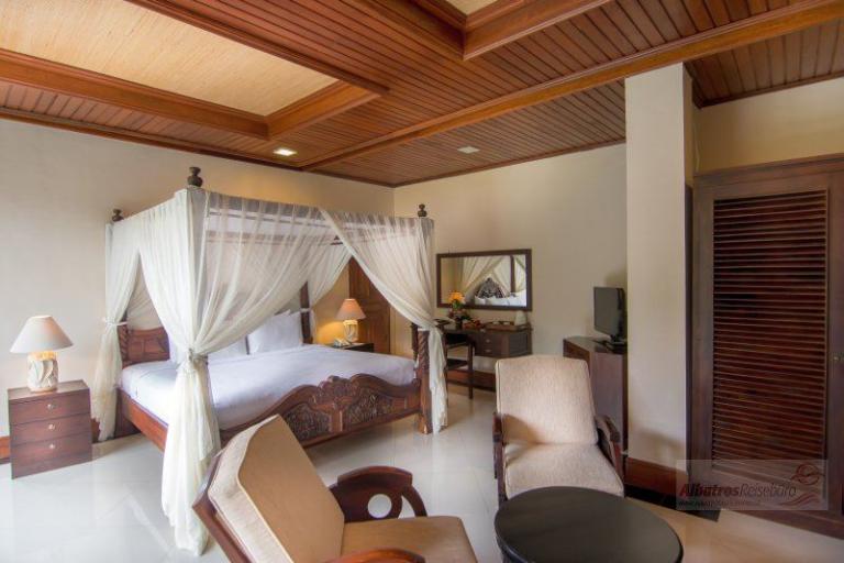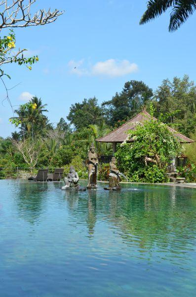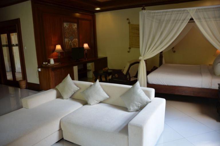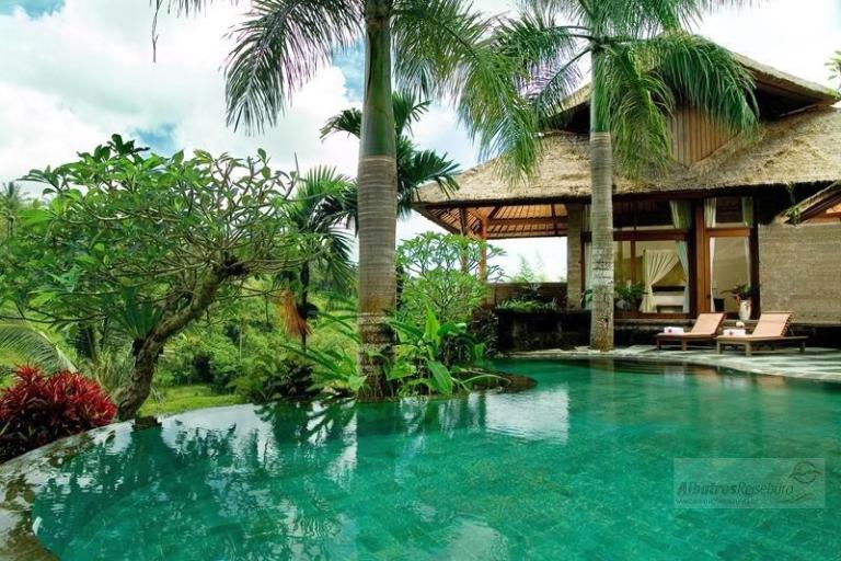 Die einzelnen Villen im Bali chinesischen Stil befinden sich in einer sehr großen tropischen Gartenanlage auf verschiedenen Höhen. Der idyllische Charakter wird durch die zwei durch die Anlagen fließenden Flüsse enorm verstärkt. Abgerundet wird das Angebot durch ein Restaurant, eine Poolbar und eine Lobby-Bar. Vom großen Hauptpool mit separatem Kinderbecken (Liegen und Sonnenschirmen ohne Gebühr) gibt es einen tollen Blick in den Dschungel.