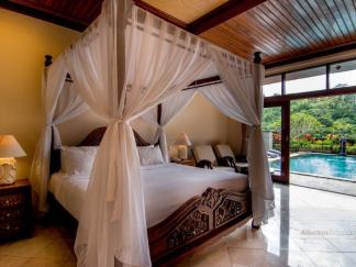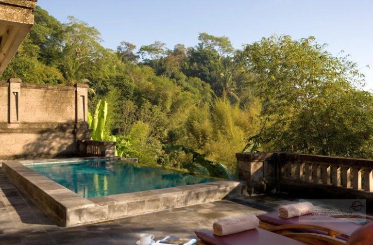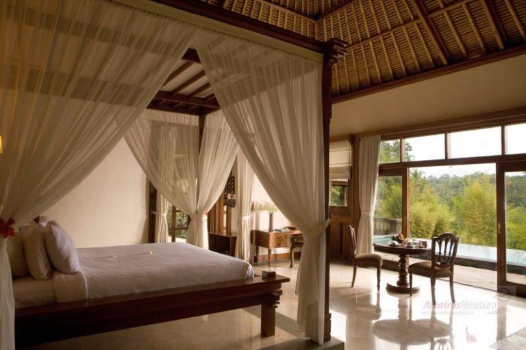 1 Bedroom Valley Pool Villa: ca. 350 qm inkl. Außenbereich. Ausstattung wie 1 Bedroom Garden Villa. Diese Villen bieten herrlichen Blick auf den Fluss und bieten zusätzlich einen Außenbereich mit einem privaten Pool und Pavillon.