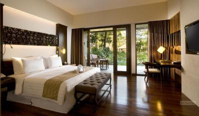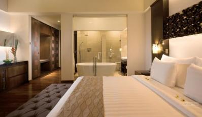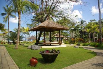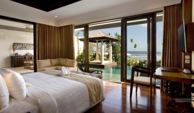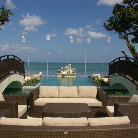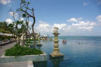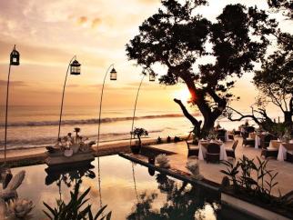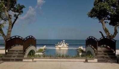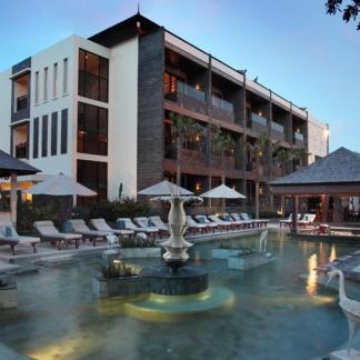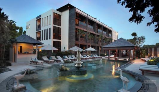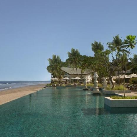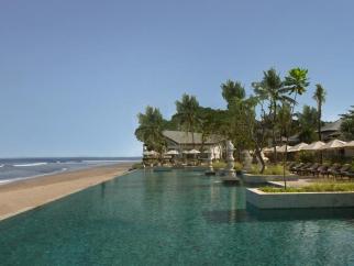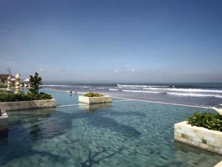 Diese tolle 5 Sterne Hotelanlage haben wir im Rahmen unserer VOR-ORT-CHECK Tour im Mai 2012 besucht (Bilder siehe unten). Sie befindet sich in allererster Strandreihe am weitläufigen Seminyak Beach (teilweise starker Wellengang). Angesagte Restaurants wie das La Luciolla oder Kudeta, hippe Bars sowie trendige und niveauvolle Boutiquen liegen in bequemer Gehweite. Wer mehr erleben wir, kann den kostenlosen Shuttlebus ins trubelige Kuta/Legian nutzen (Dauer des Transfers ca. 15 Minuten). Der Transfer vom Flughafen dauert ca. 40 Minuten.