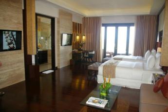 Die Zimmer im Garden Wing (Gartenblick, teilweise auch zur Straße ausgerichtet) und im Beach Wing (zur Meerseite ausgerichtet, eingeschränkter Meerblick) sind mit ca. 47 m² großzügig bemessen.