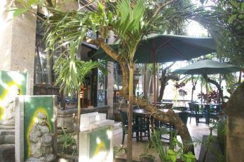 Diese gemütliche balinesische Anlage liegt an der Grenze von Kuta nach Legian, nur 5 Gehminuten vom breiten Kuta Beach entfernt (gelegentlich starker Wellengang). Einkaufsmöglichkeiten, günstige Restaurants und das rege Nachtleben von Kuta finden Sie in bequemer Gehweite. Der Airport-Transfer dauert knapp 20 Minuten.