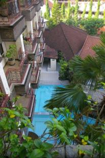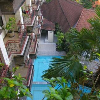 Das einfache Vilarisi Hotel, im Inneren aufwendig mit indonesischen Steinmetzarbeiten dekoriert, verfügt über eine kleine Lobby und ein Restaurant (im Restaurant kostenloser WiFi-Internetzugang). Eine urige Brücke führt zum kleinen Pool (sehr kleine Liegefläche mit einer begrenzten Anzahl von Liegen), auf der Dachterrasse (5. Stock, Lift) mit fantastischem Blick über Kuta und die beeindruckende Berglandschaft im Hinterland stehen weitere Liegestühle zur Verfügung. Verschiedene Serviceleistungen wie Auto- und Motorradvermietung, Wäscherei-Service und Safe werden ebenfalls angeboten.